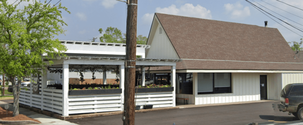 has been cleaned up for the Pour House and is now partly concealed behind an open-air patio dining structure: