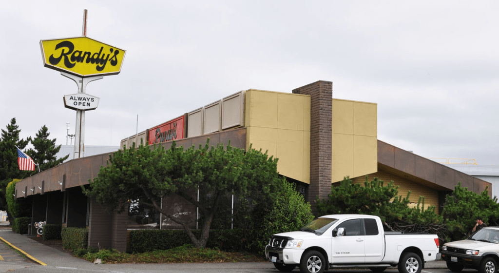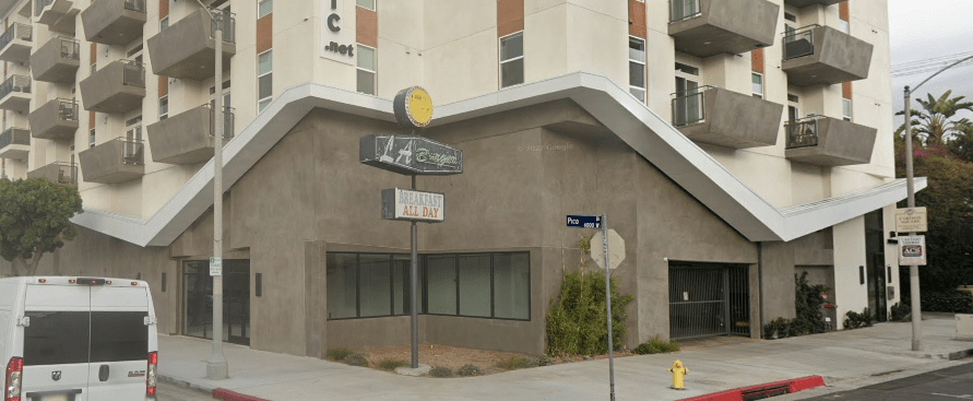 This former Orange Julius in Los Angeles, CA housed L.A. Burger for many years. The building was demolished around 2019 with the promise that the mega building on the lot and behind it would “mimic” the roofline: