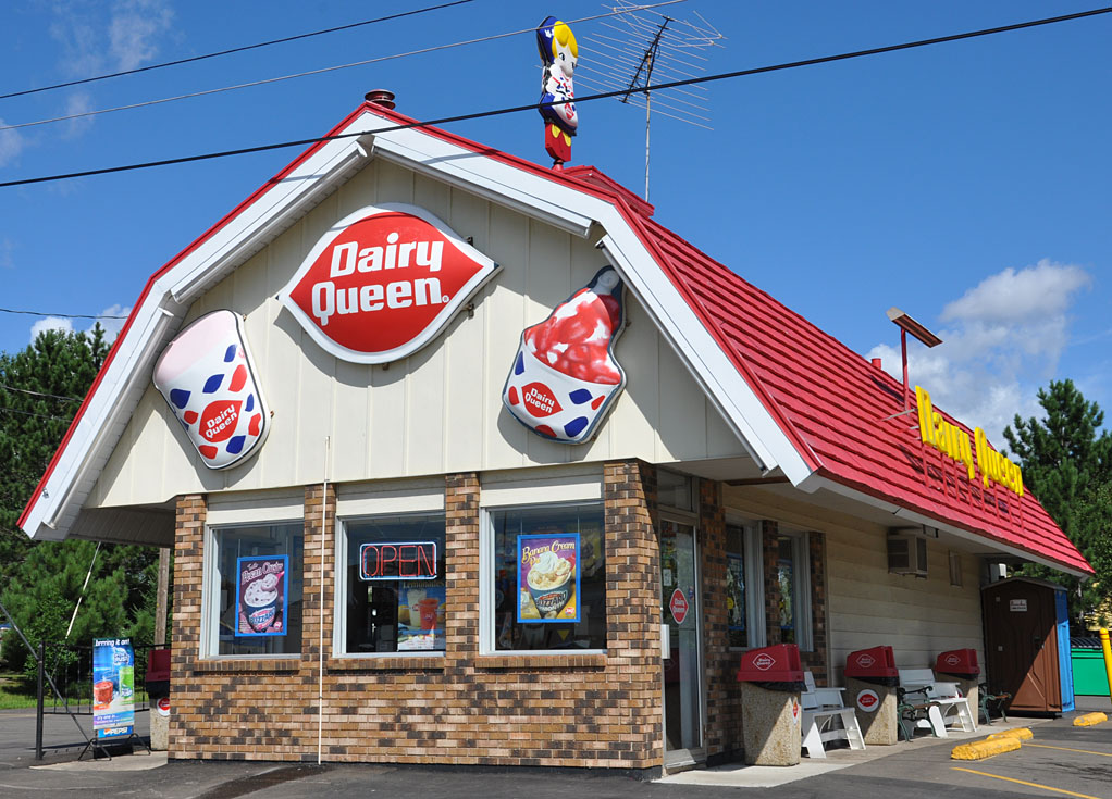 The Dairy Queen in Hibbing, MN still has the Little Miss sign on the roof, the letters on the sides of the building, and the lips logo sign on the front of the building. However, the drink cup and sundae signs are gone now: