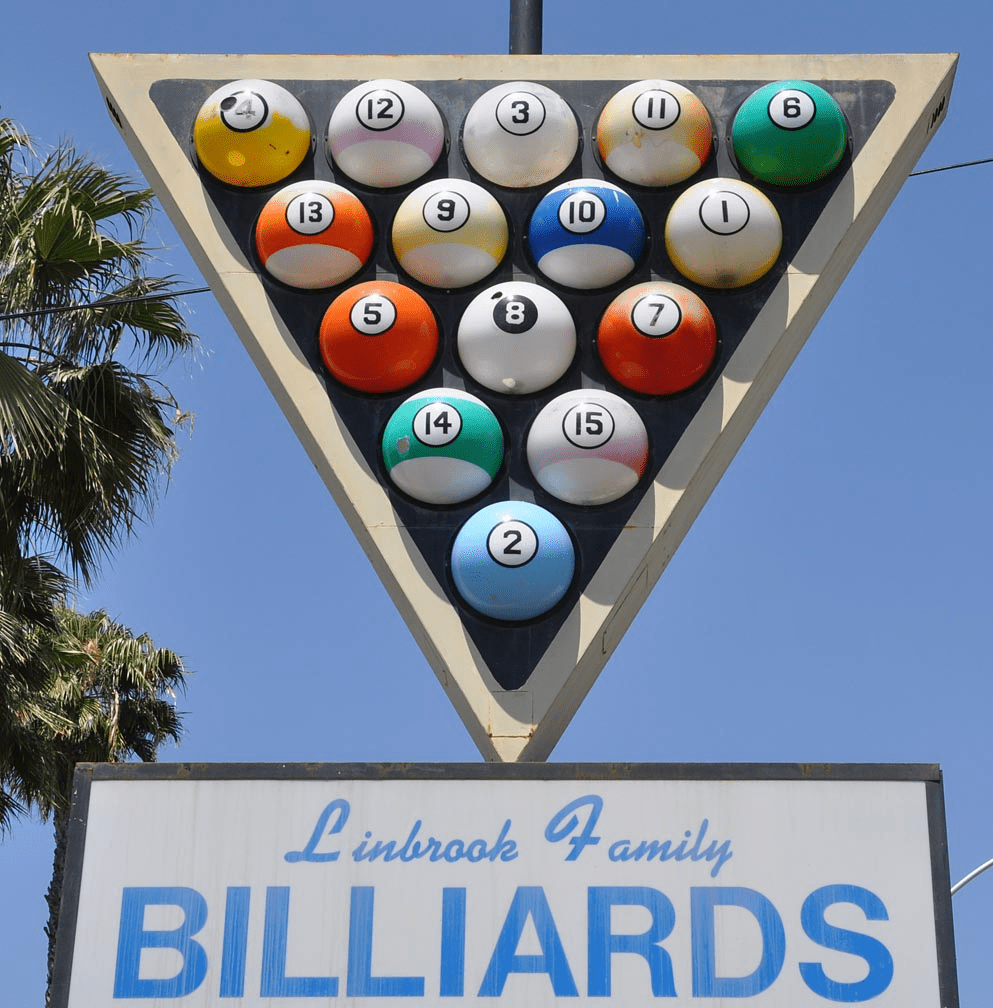 Linbrook Family Billiards in Anaheim, CA is gone and so is this sign: