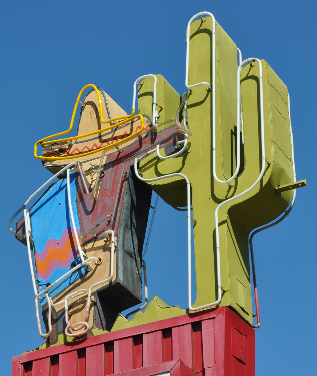 The Taco King restaurant in Upland, CA closed and the building was demolished. A Rally’s was built on the site but this sign remained as of October. I don’t know if the sign will be removed or adapted: