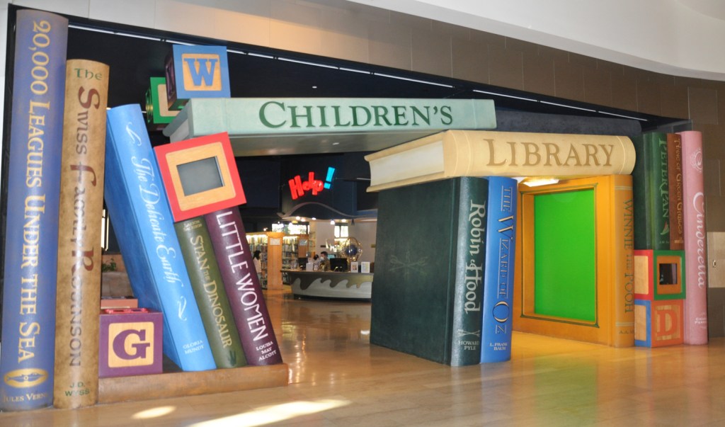 These giant books mark the entrance to the Children’s Library at the Cerritos Library in Cerritos, CA: