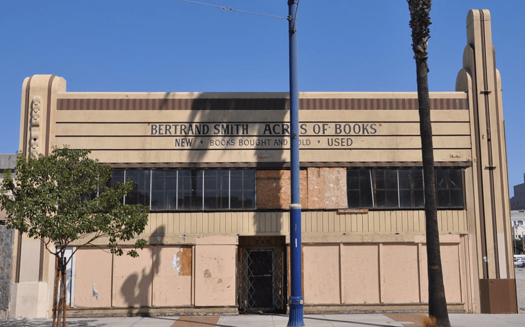 The Acres of Books building in Long Beach, CA was built in 1924 as a market. After earthquake damage, it got this streamline look in 1936. The bookstore was here from 1959-2008: