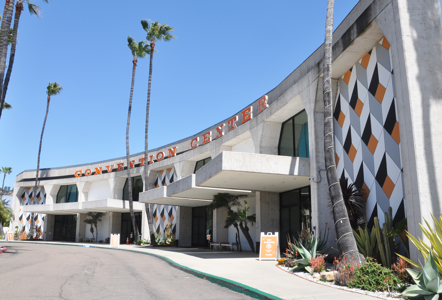 The Convention Center at the Town & Country Resort in San Diego was built in 1969. These orange, black, grey & white tiles had been covered up for decades. They were uncovered around 2020: