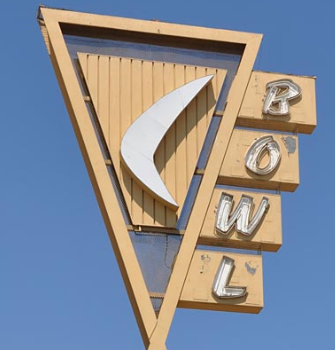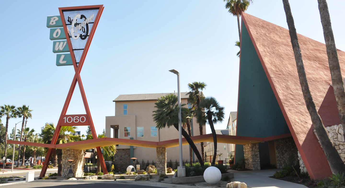 The Covina Bowl in Covina, CA has been converted to condos but they preserved the entrance and sign: