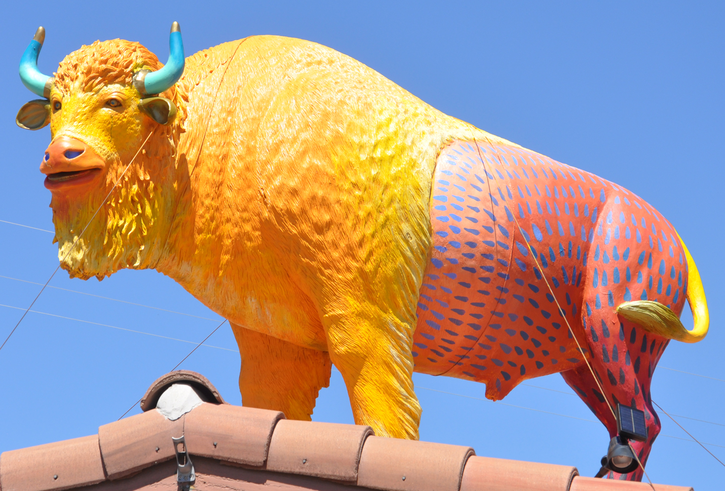 They repainted the statues in Morongo Valley, CA when Willie Boy’s became Spaghetti Western last year. The horse is now a bright blue: