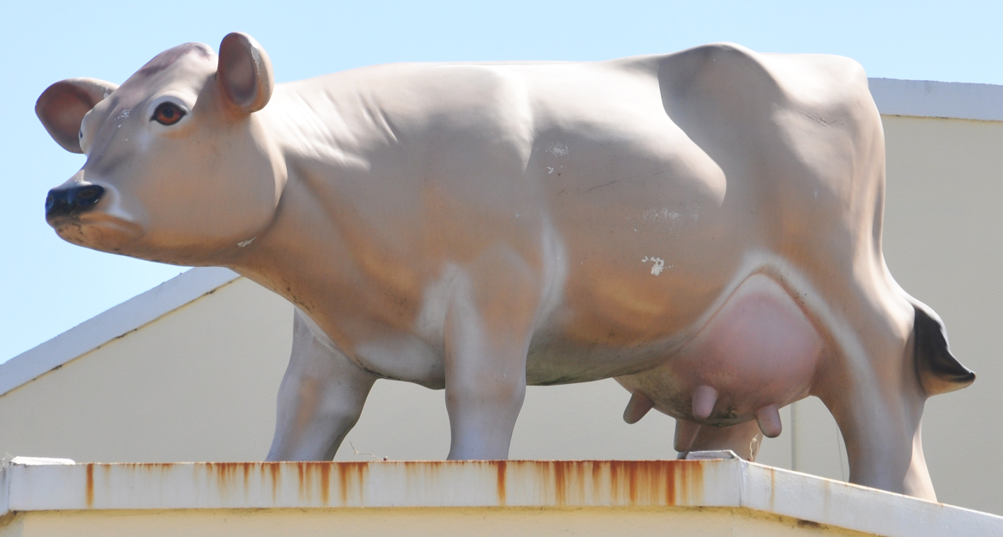 This cow in Petaluma is on the roof of the Petaluma Creamery: