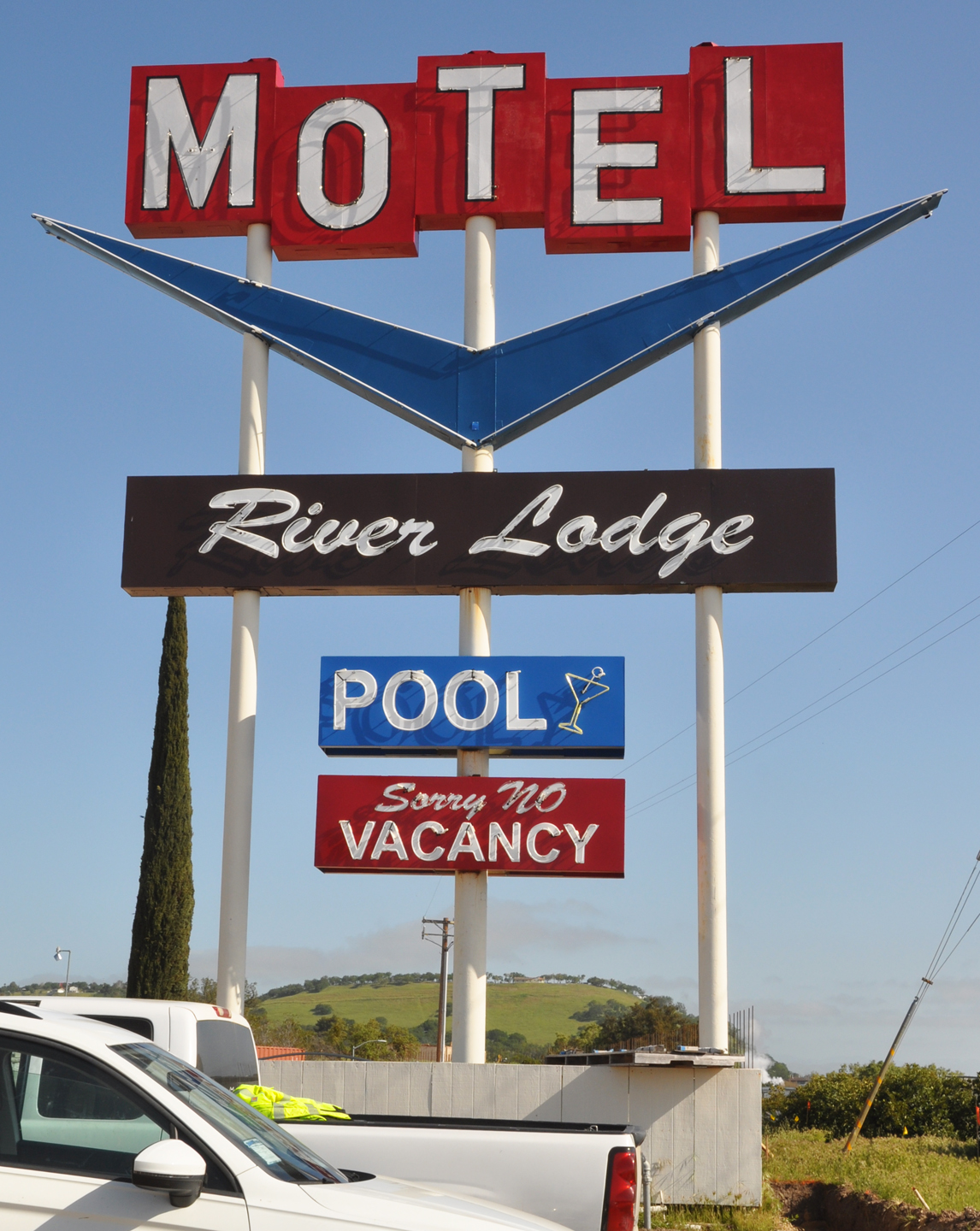 The daylight was nearly gone in Pittsburg, CA but I got these two oldies at the same place. I can’t find any postcards or vintage images to show what this pole sign looked like originally: