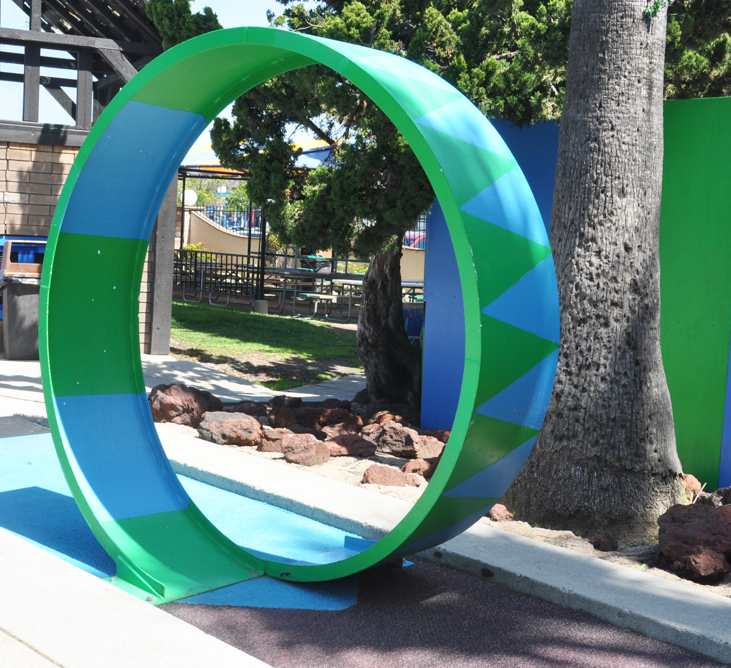 And lastly, this classic loop-de-loop at the Golfland in San Jose, CA is the biggest I have ever seen. And I have shot hundreds of mini golfs around the country. It’s about four feet tall and most of the putters’ balls would stall out around the top of the loop. I think this is one of those obstacles where you just have to whack the ball as hard as you can: