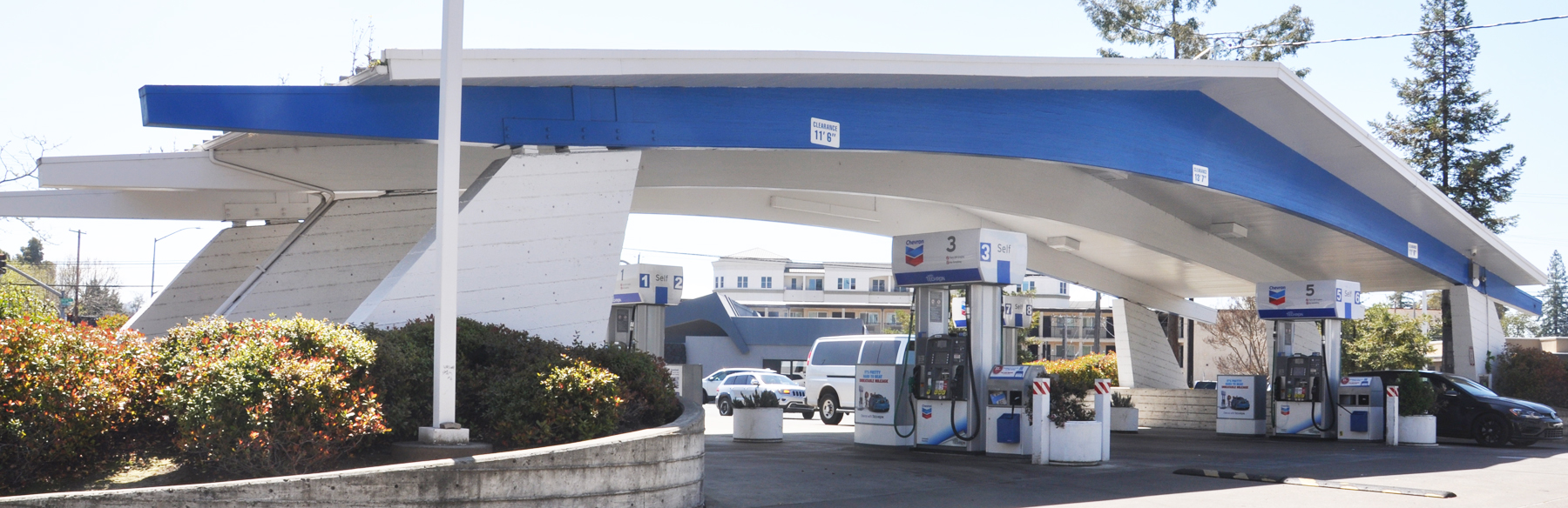 This mid-century modern station is in Santa Rosa, CA. I’ve never been able to find the build date or architect but it is truly special with its use of concrete and wood: