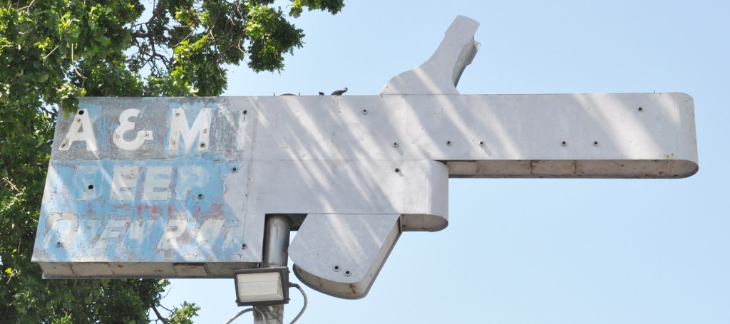 This one in Sacramento, CA is missing its neon but those letters are great. Too many trees to ever get this one in the light — maybe in winter?: