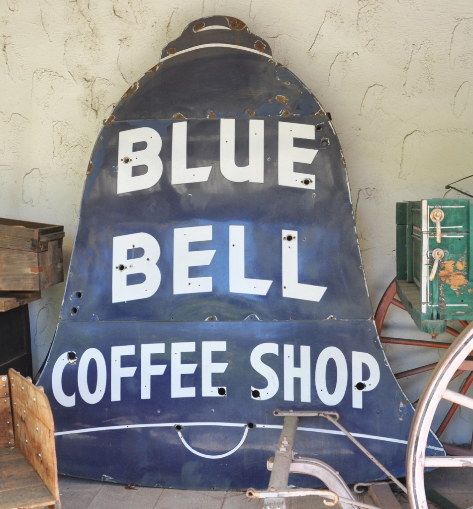 This sign was originally installed in downtown Placerville, CA above the coffee shop. It’s now leaning on the building outside the El Dorado County Historical Museum next to the fairgrounds: