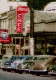 I believe this neon “Cafe” panel in Truckee, CA was built for Brown’s Cafe around the time it opened in 1944. There was a horizontal panel on top reading “Brown’s.” This is the only vintage image I can find: