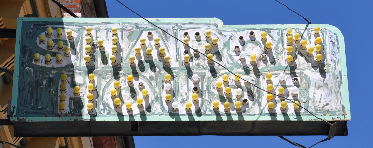 This one in Sacramento, CA is missing its neon but those letters are great. Too many trees to ever get this one in the light — maybe in winter?: