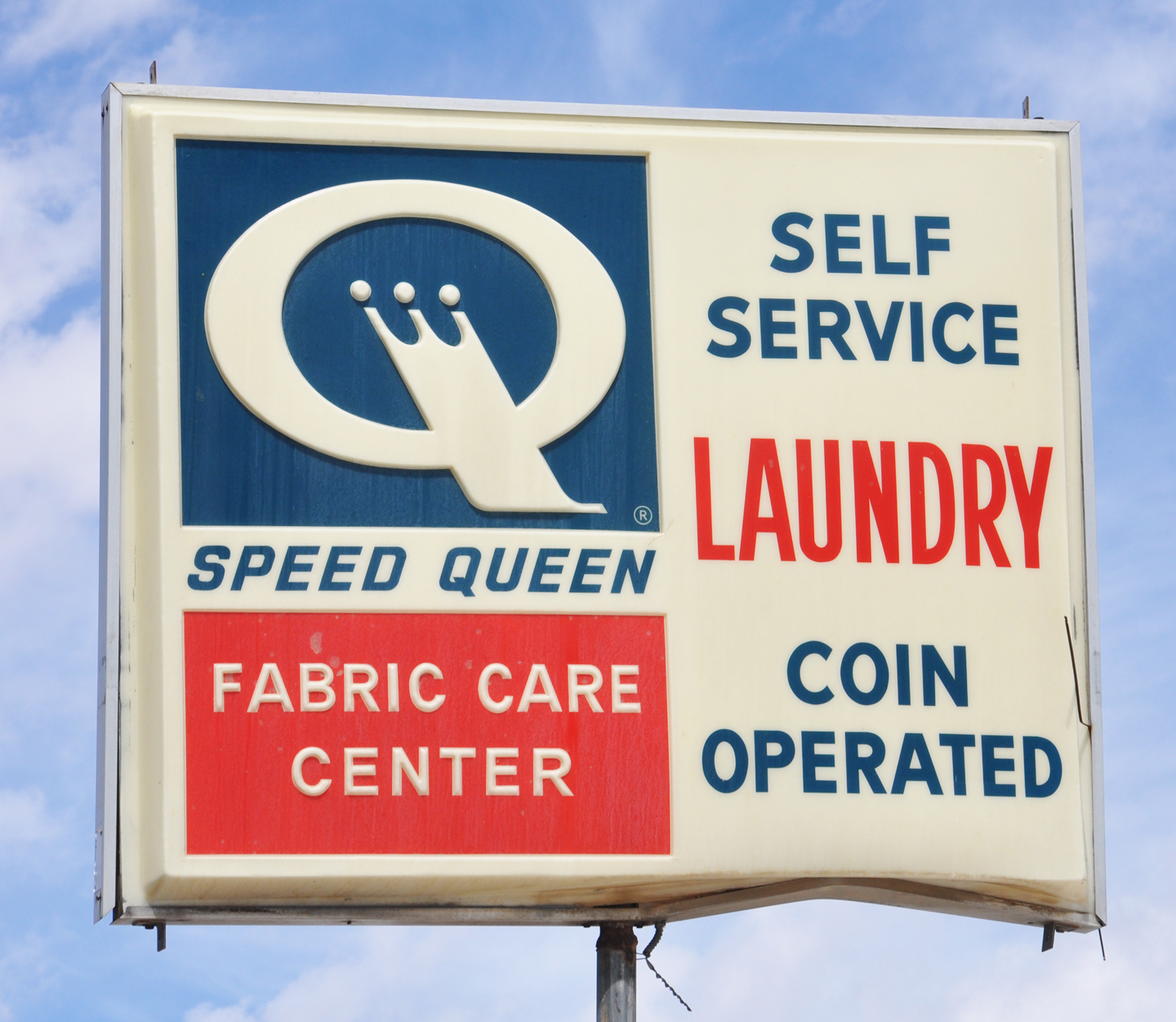 A little bit of Utah before we move on to full-time Colorado for many days. This vacuum-form plastic sign still remains at a former laundromat in Green River, UT: