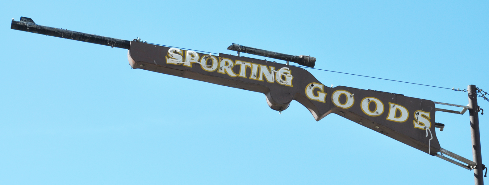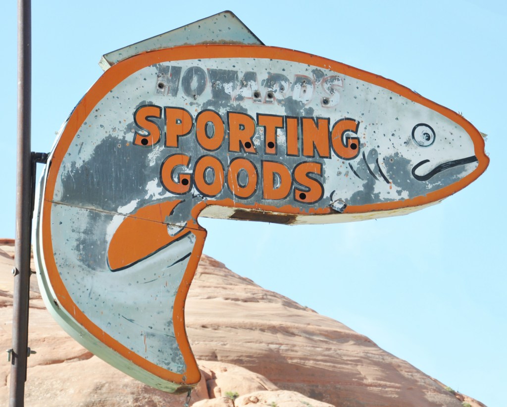 At the Hole ‘N the Rock tourist attraction in Moab, UT. These two signs, now hanging in the petting zoo area, were originally installed at Howard’s Sporting Goods in Cortez, CO: