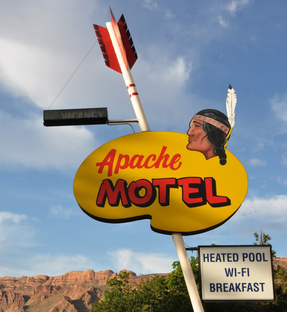 The Apache Motel itself in Moab is looking pretty spiffy now. The sign hasn’t had neon in decades but I’m glad the arrow and Native American are still there: