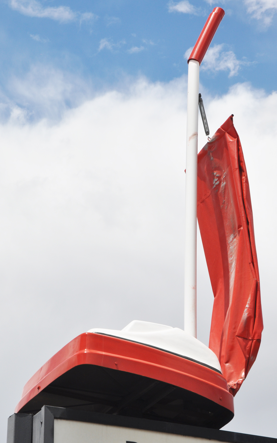 I’ve seen the same style vacuums in Texas – this one is installed on top of the sign at Russ Vacuum: