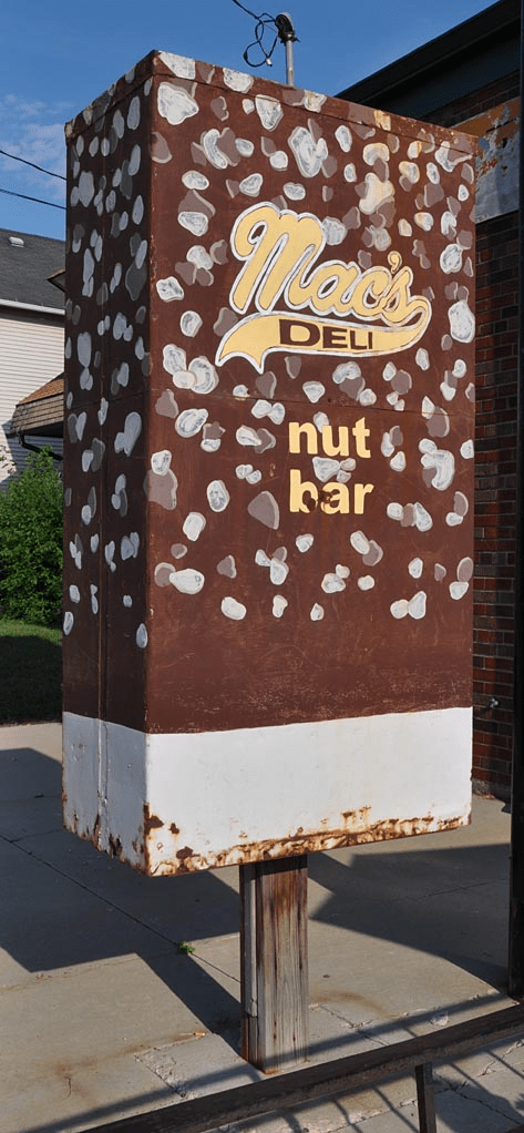 Mac’s Deli in Kenosha, WI closed around 2021. Earlier this year, the building began housing another business and this Nut Bar was removed: