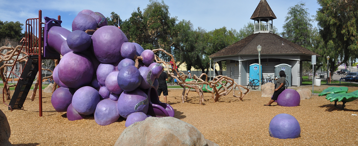 The Vinehenge playground in Escondido, CA was removed earlier this year when the grapes and vines were showing some wear and found to be unsafe: