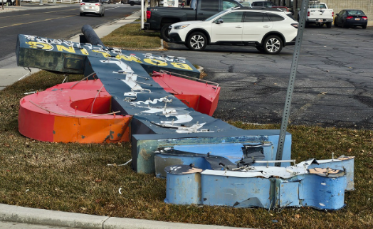 The damage looks pretty bad and I don’t know if it will be restored. The sign is about 50 feet tall so it would cost a fortune to repair or even replicate. Here’s a photo from KSL-TV: