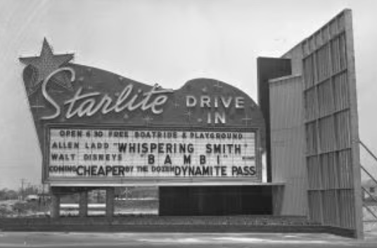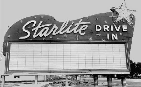 Both sides of the original sign from 1950. Note the long-missing “Drive In” letters and stars in the background: