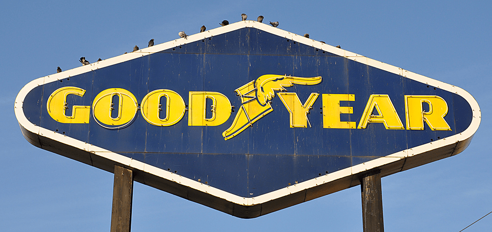 Another of these now rare giant Goodyear signs — this one in Columbus, OH…: