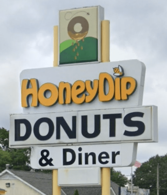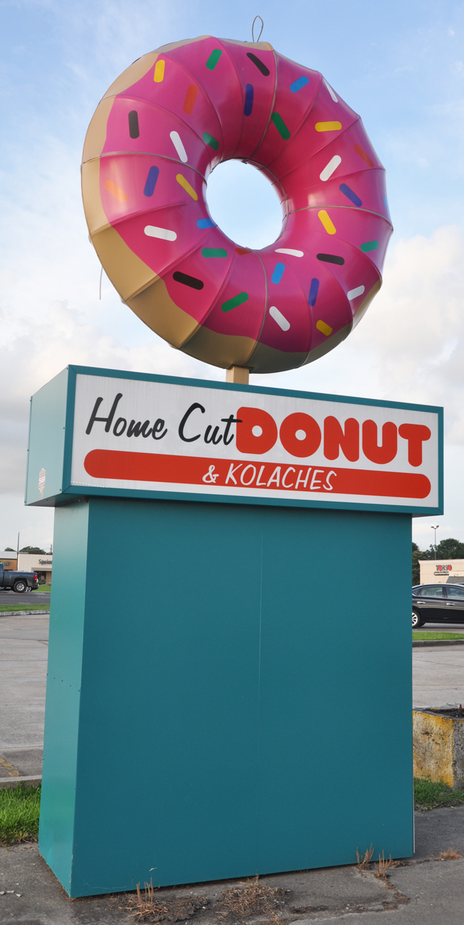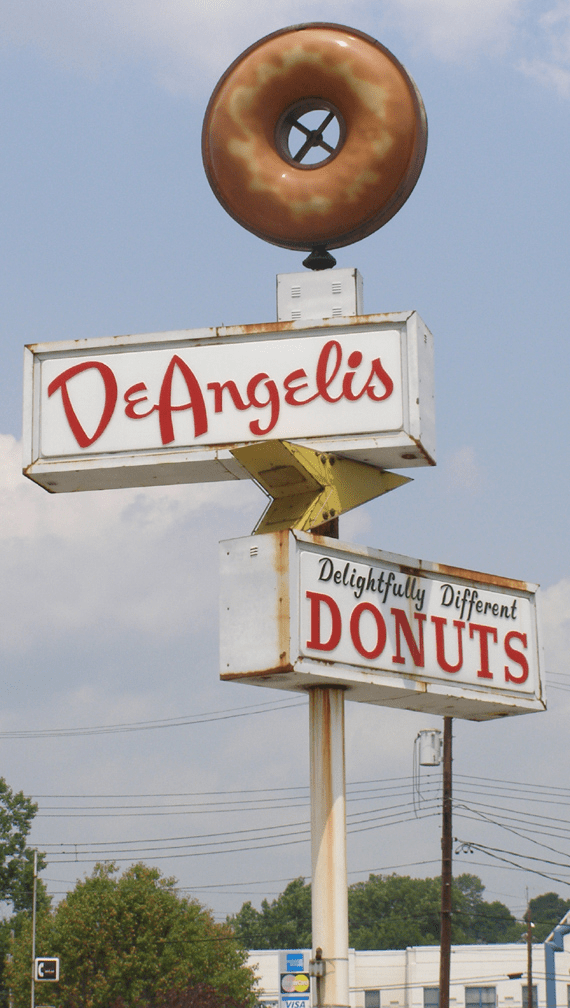 This shop in Rochester, PA closed last year and the giant donut on top of the sign has been removed: