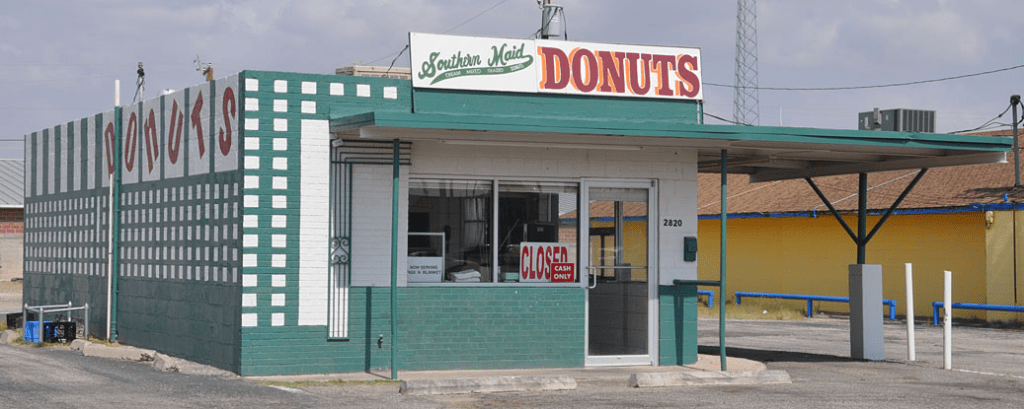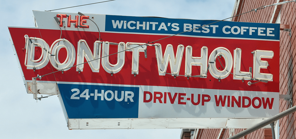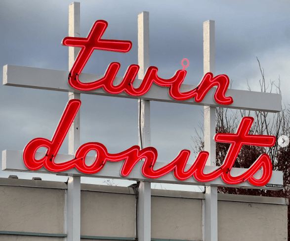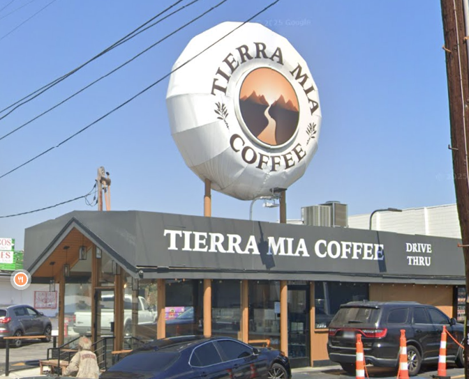… is now part of the Tierra Mia Coffee chain. The sign is still donut-ish but I wish the hole was still there: