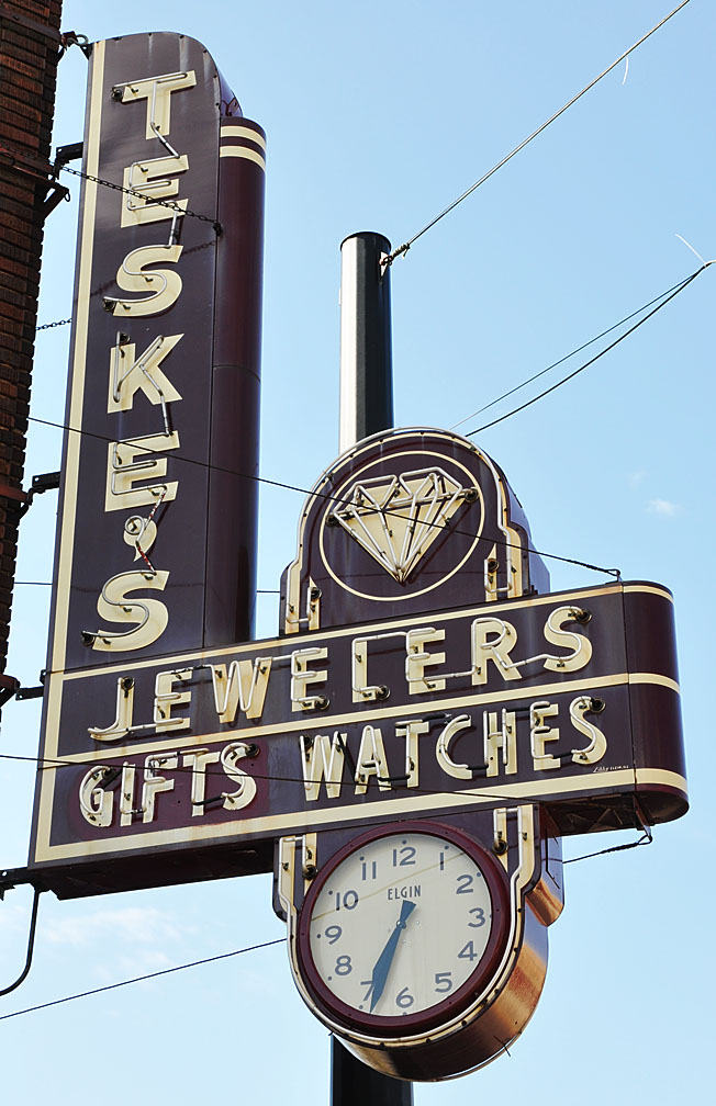 From the Clock Signs pages… This Elgin Watch Company sign in Hibbing, MN is gone now. There are only a few of these once commonplace signs left: