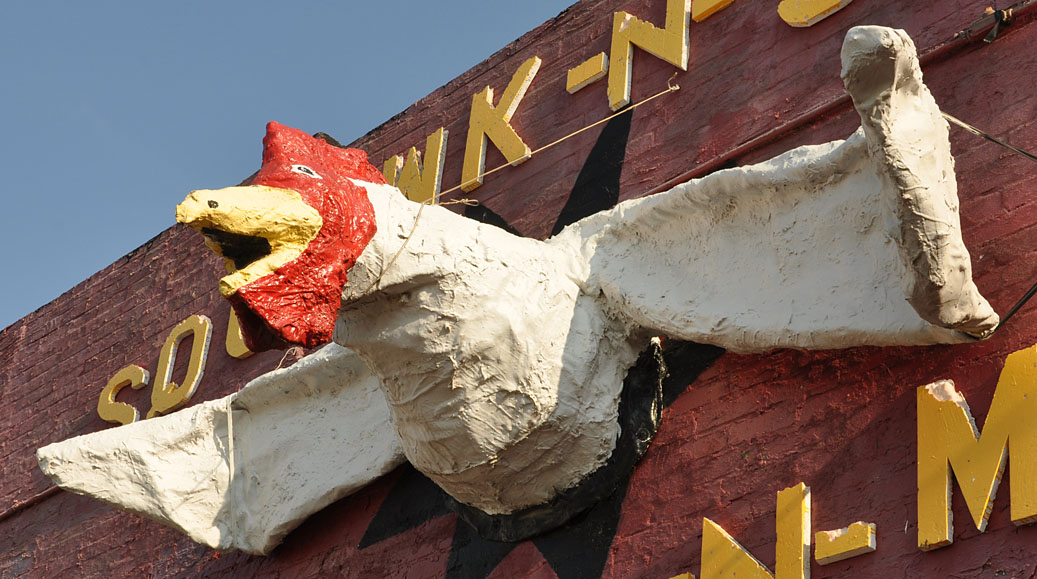 From the Whales pages.. the statue that was installed on top of Worrell’s Seafood (closed 2011) in Wilson, NC has apparently been fully restored and looks ready for reinstallation. They are probably waiting for spring when the new Worrell’s Seafood Market & Restaurant opens. My photo from 2009: