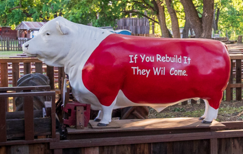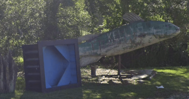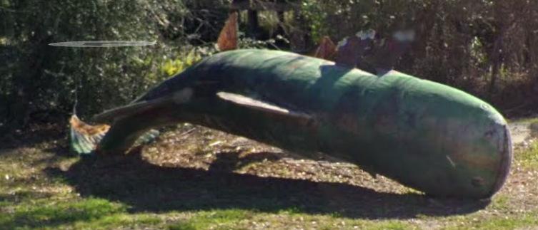 Last year, the statue is turned in the other direction with broken tail side facing us. So, could it be that the business might be building a sign and has plans to re-erect the fish? There’s no sign, other than a “wood for sale” on the corner or I’d be calling immediately to find out what the deal is. I’m hoping for a miracle here and I’ll be holding my breath for next year’s Street View:
