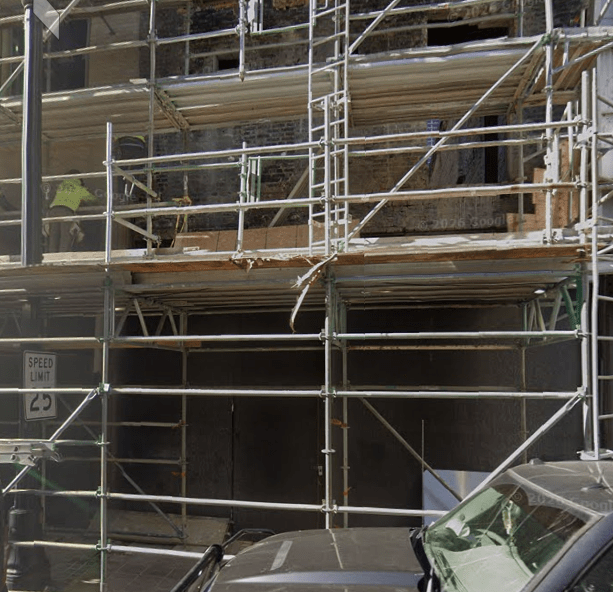 … might be gone now. Google Street View shows renovations going on last year which had the storefront taken back down to the brick: