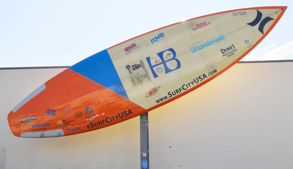 The world’s largest (42′ long) surfboard in Huntington Beach: