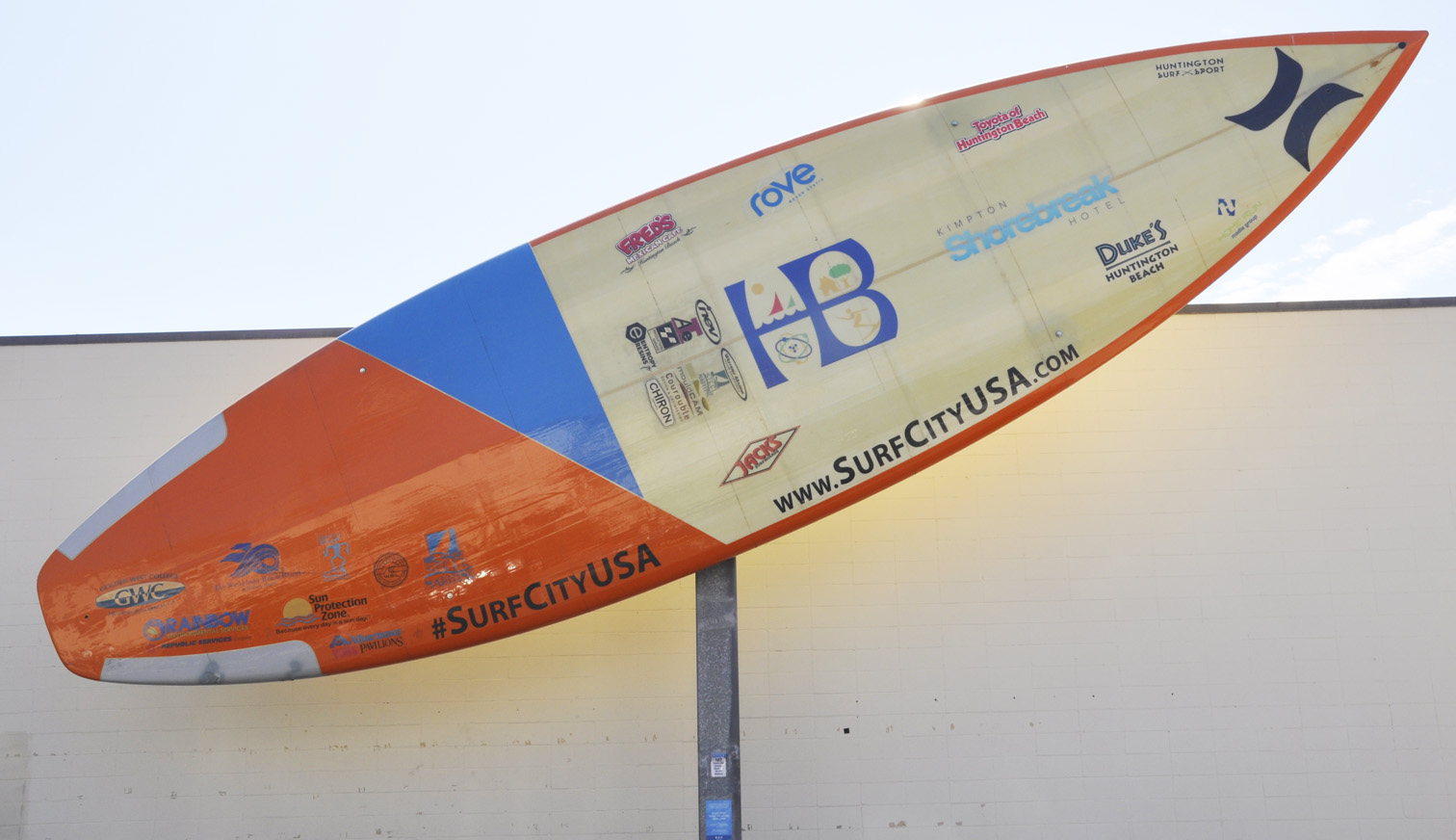 The world’s largest (42′ long) surfboard in Huntington Beach: