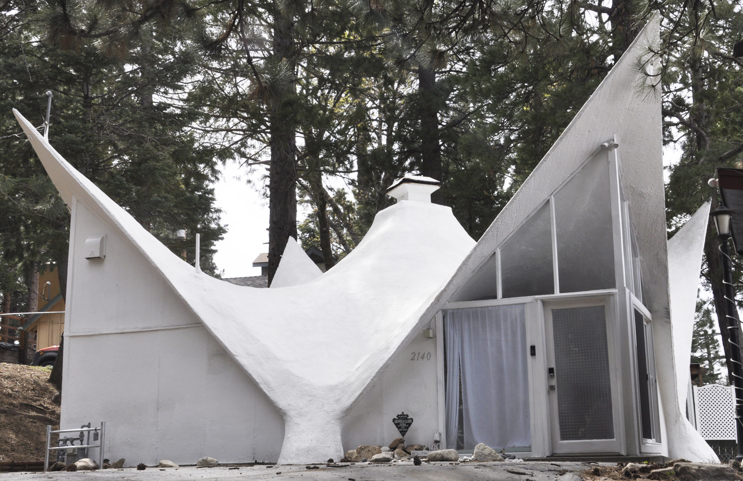 This bird statue is known as “Pinky” and is installed way up on a pillar at a construction site in Eagle Rock: