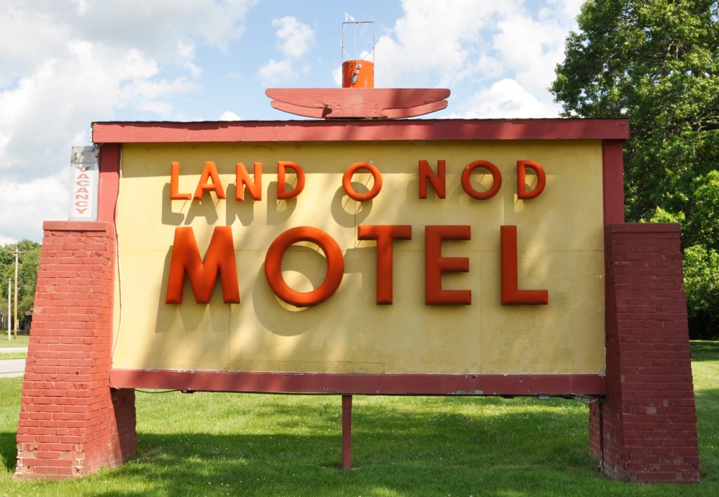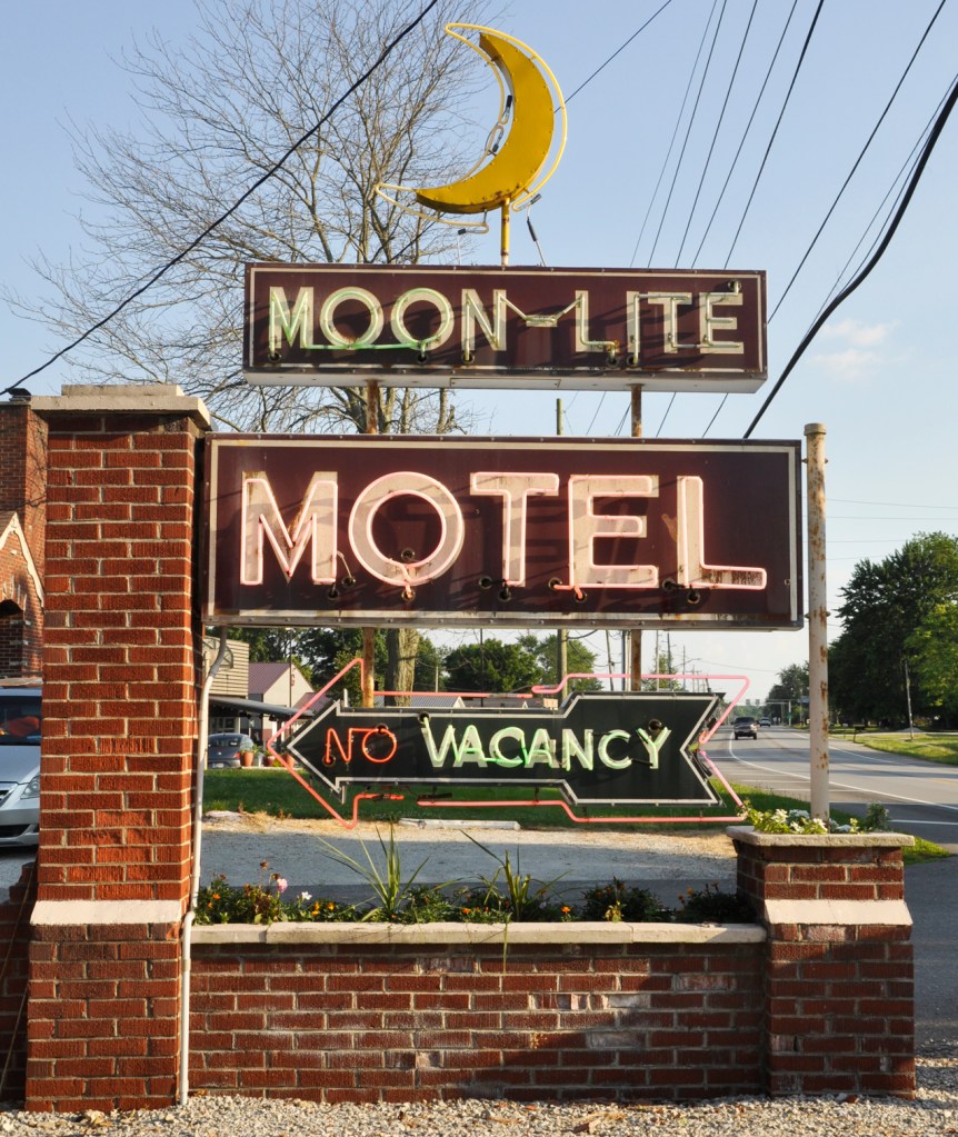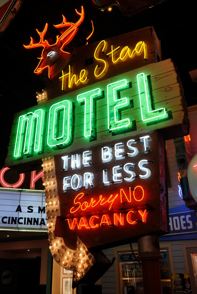 The Apache Motel sign in Tucumcari, NM — laying the in the parking lot for a couple of years now to prevent it from falling over: