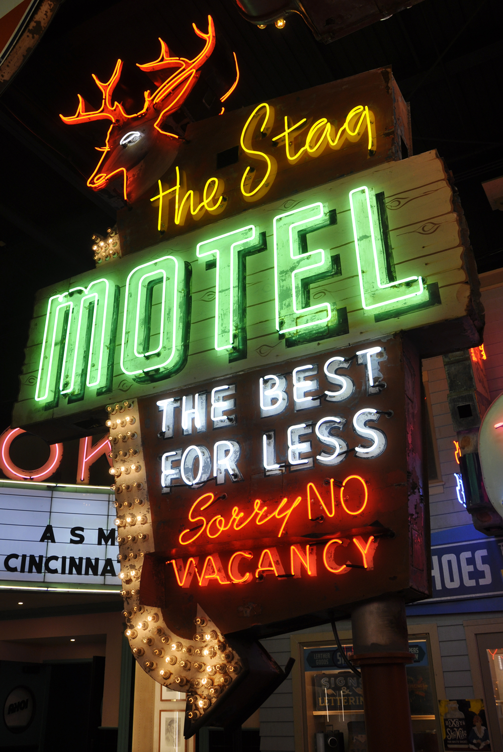 The Apache Motel sign in Tucumcari, NM — laying the in the parking lot for a couple of years now to prevent it from falling over: