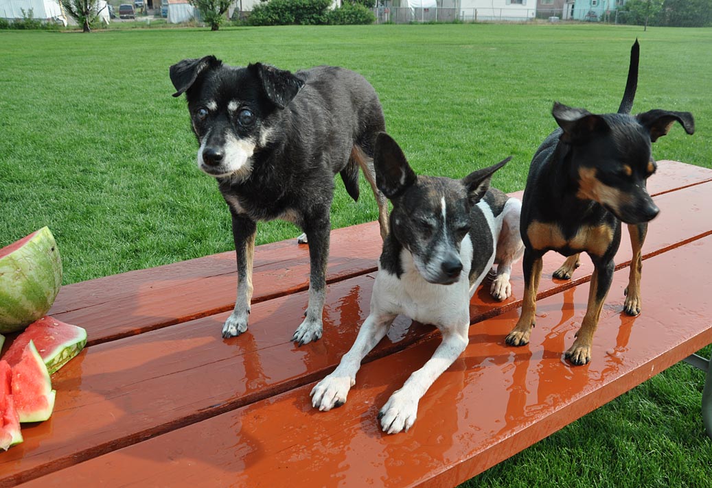 So many lakes today for the dogs that I lost count. Grippie always seems to find the dead fish first — making up for her blindness with her sense of smell. Luckily, no dead-fish rolling incidents on this trip which makes the van reek for weeks despite dousing with Febreze. Don’t believe those TV commercials.