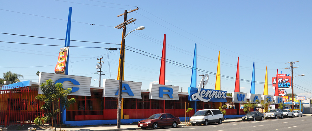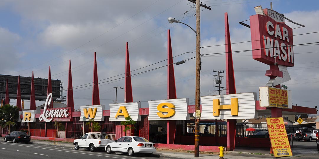 I don’t know if this Wright Lighting building is vintage or retro (recent in a vintage style). I think it is the real deal. Maybe not always painted so drably monotone?