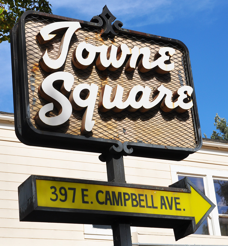 Right next to the Towne Square sign. Love the underlying pink flat shoe: