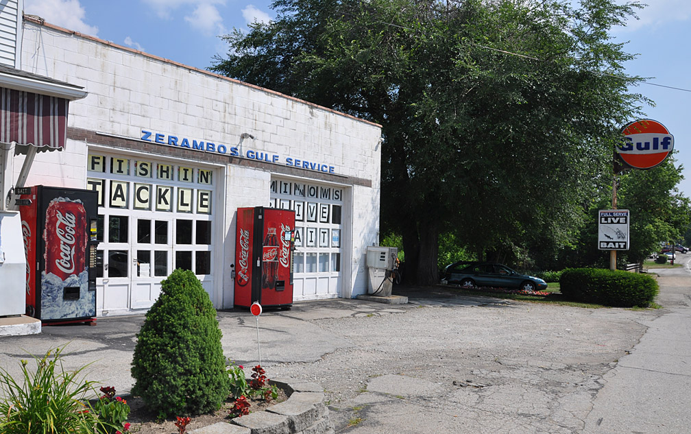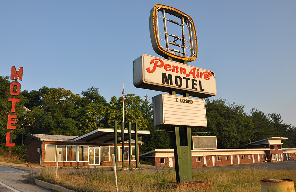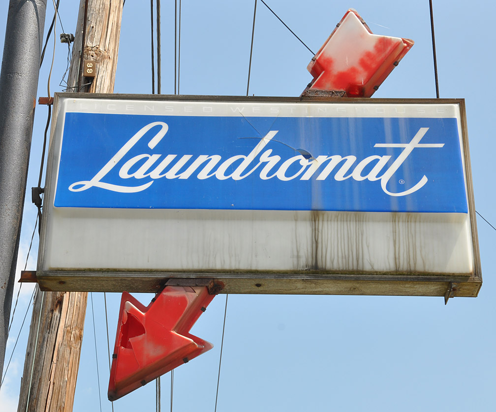 In Indianapolis — wonderful giant arrow plus itty bitty arrow. The guys working here were mystified why I would want to photo such a thing. But they did say that in the 1970s or so this was the Holly Oak, a bar. And I’m betting another name and probably a restaurant or motel, before that: