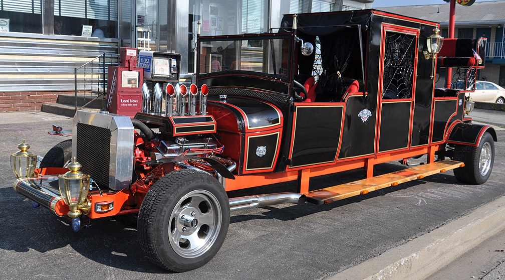 I’ll be posting more info about the history of the Chicken Limo at my site eventually. I also wanted to see the older chicken limo in Indy and had a vague address. I stopped at a used car dealer and asked if they knew where it was. Yes, but I was too late — there was a fire and it was destroyed. I went to the antiques dealer where it was located for the full story. While the car had been set on fire by an attention-seeking cop, the bird was fine. A crazy story — here’s some of the news coverage: