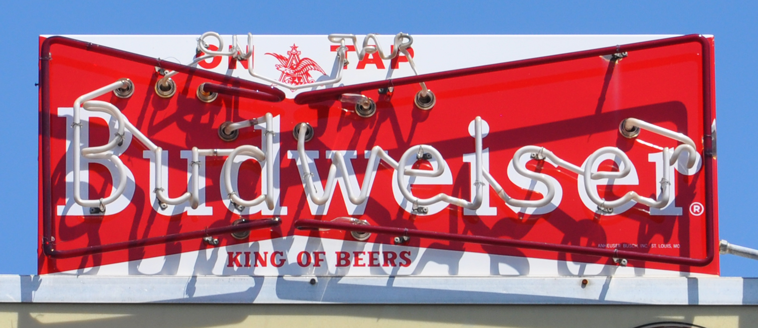 This Budweiser sign in Tucson, AZ was on top of the Home Plate sports bar sign. Last year, the text panels below were adapted for The Dugout and this sign was gone: