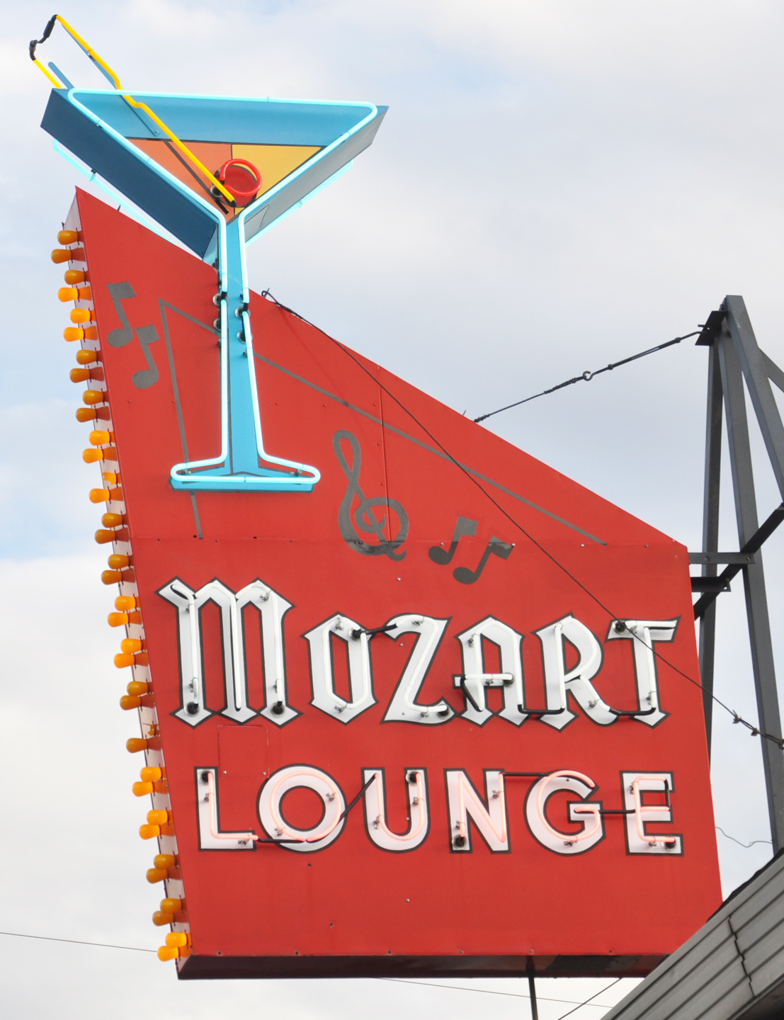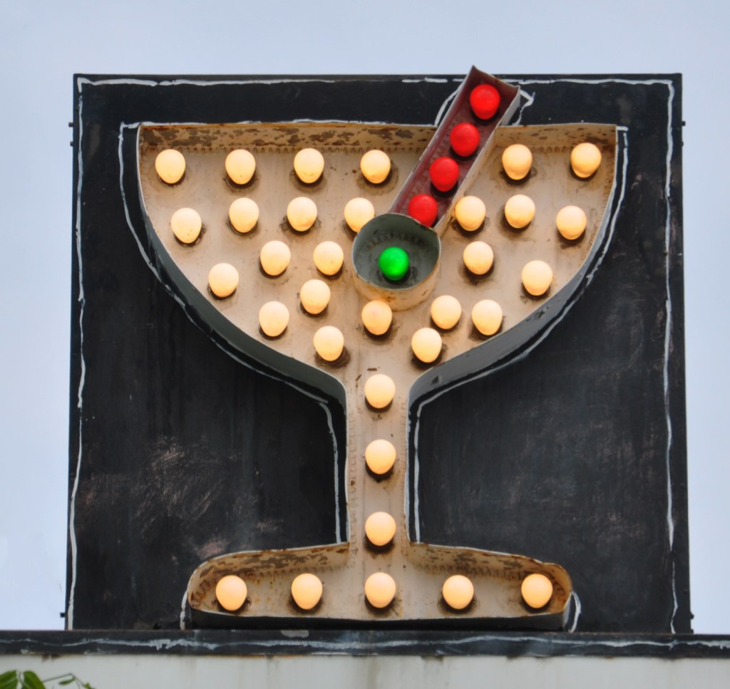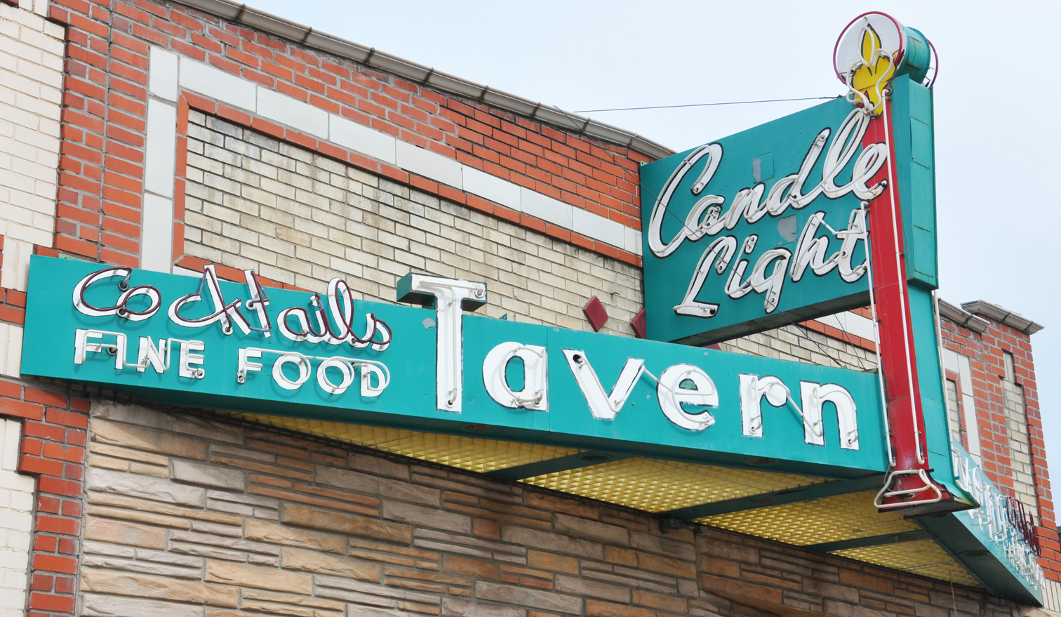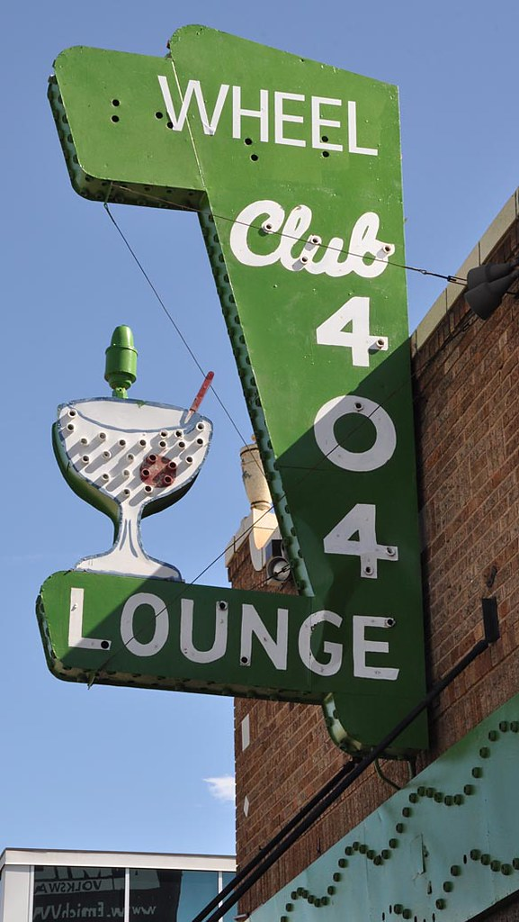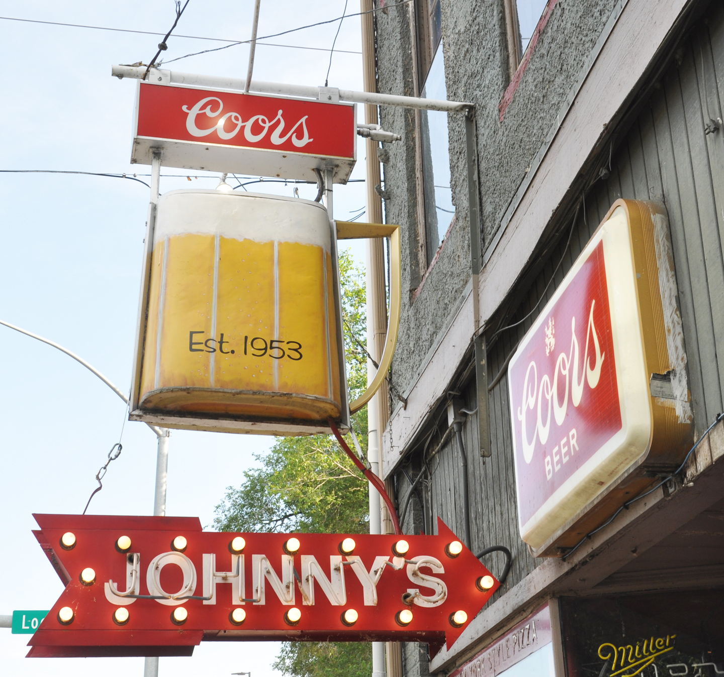 Moving on to Johnny’s Tavern in Lawrence, KS. This cute beer mug sign is likely from the 1960s: