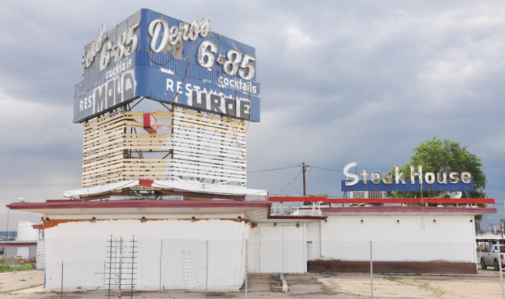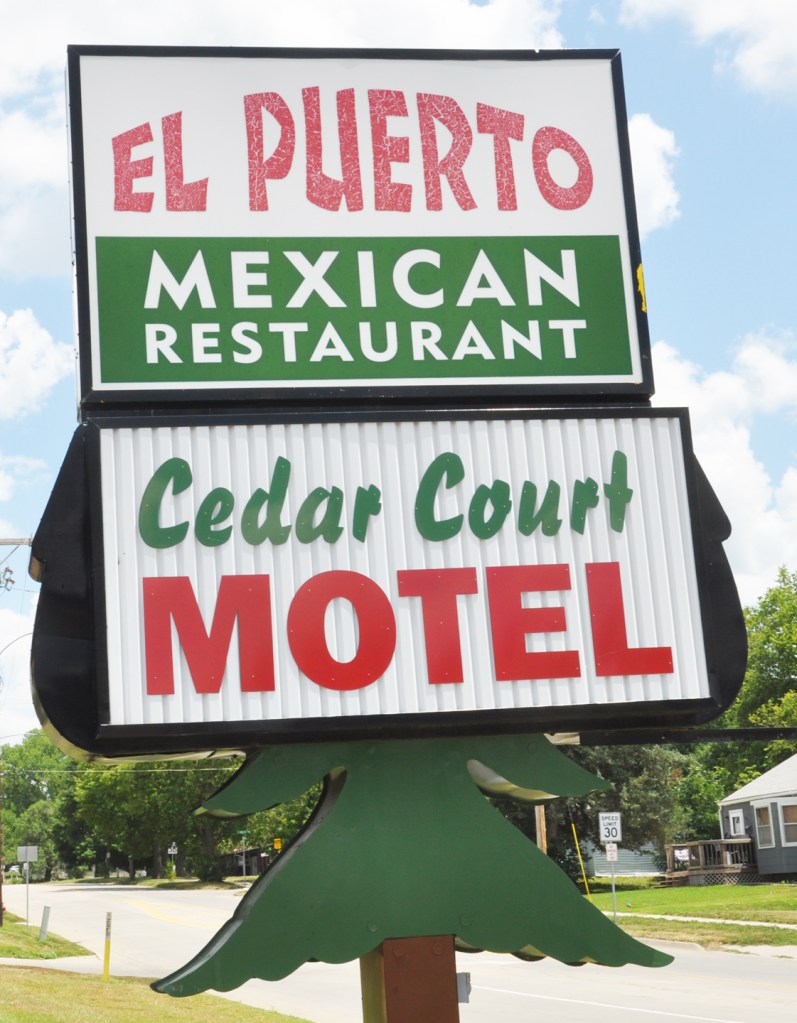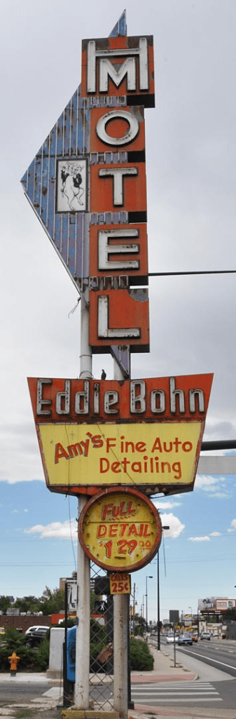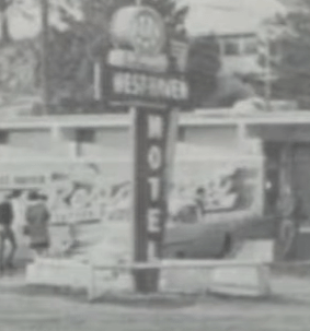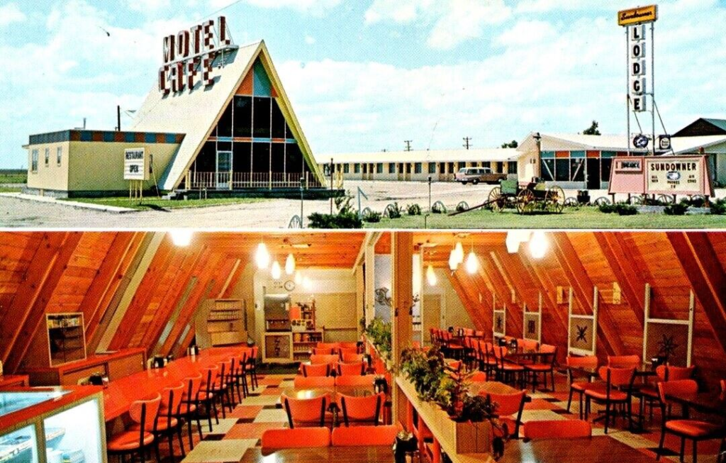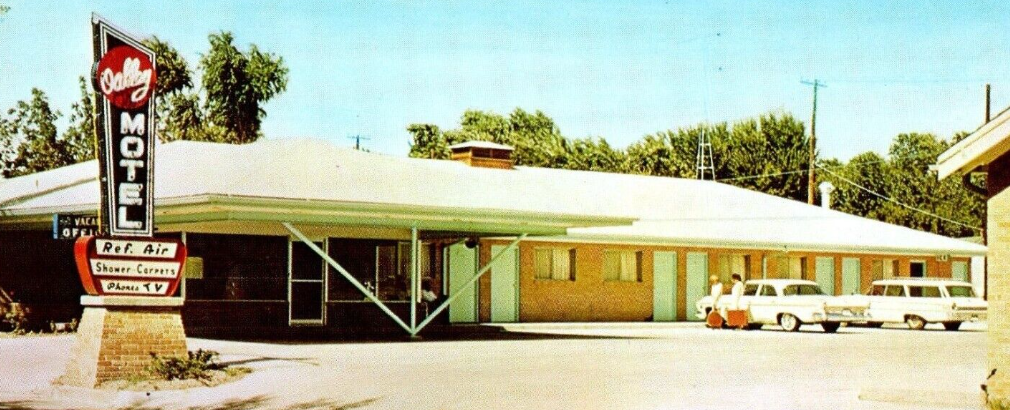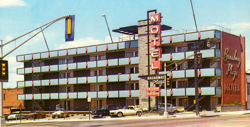 This motel/restaurant in Kansas City, KS has been abandoned for decades. I couldn’t stir up any vintage color photos but there’s this tiny/fuzzy image from the 1960s: