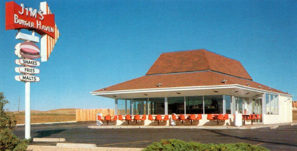 Homer’s Drive Inn in Leavenworth, KS started out as a root beer shack with car hops in 1931. It moved to this building in 1938 which was remodeled in 1962: