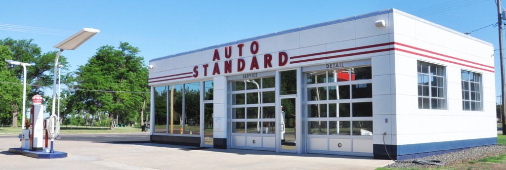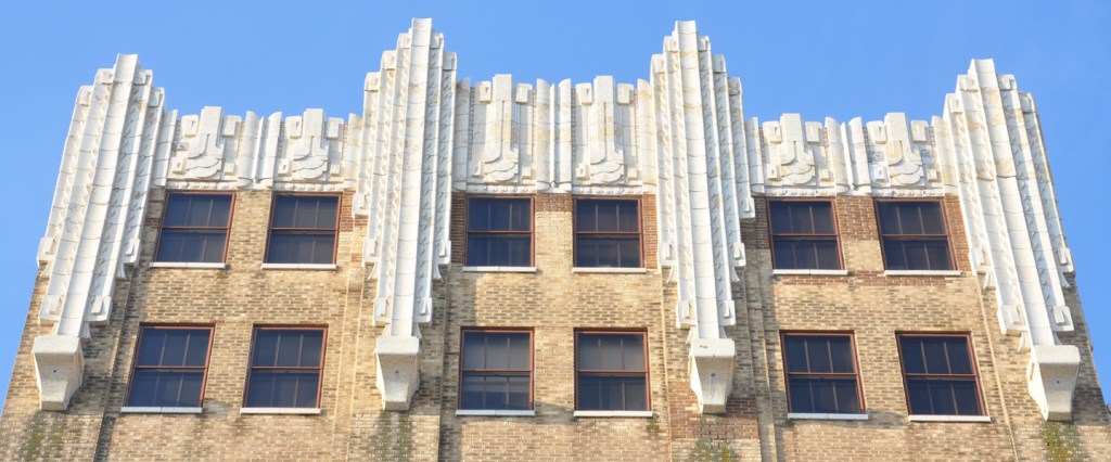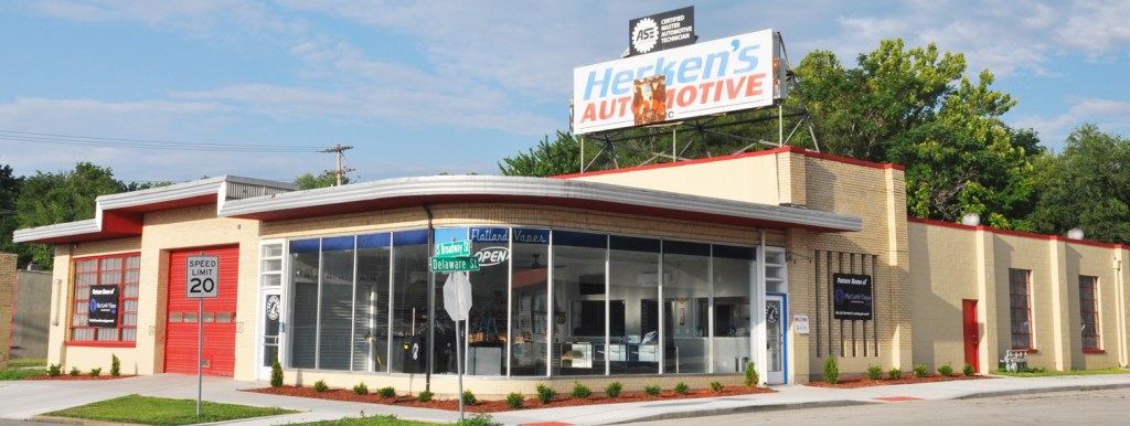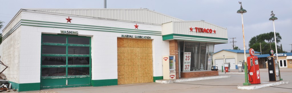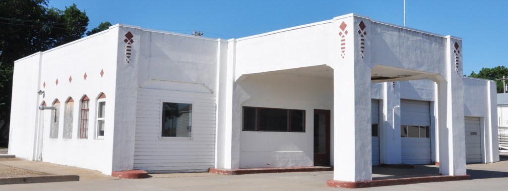 Moving on to some buildings. This one in Leavenworth, KS originally housed the Perry L. Black Oldsmobile Cadillac dealership when it was built in 1940. It now houses a vape store. The original neon sign is supposedly underneath the Herken’s sign.