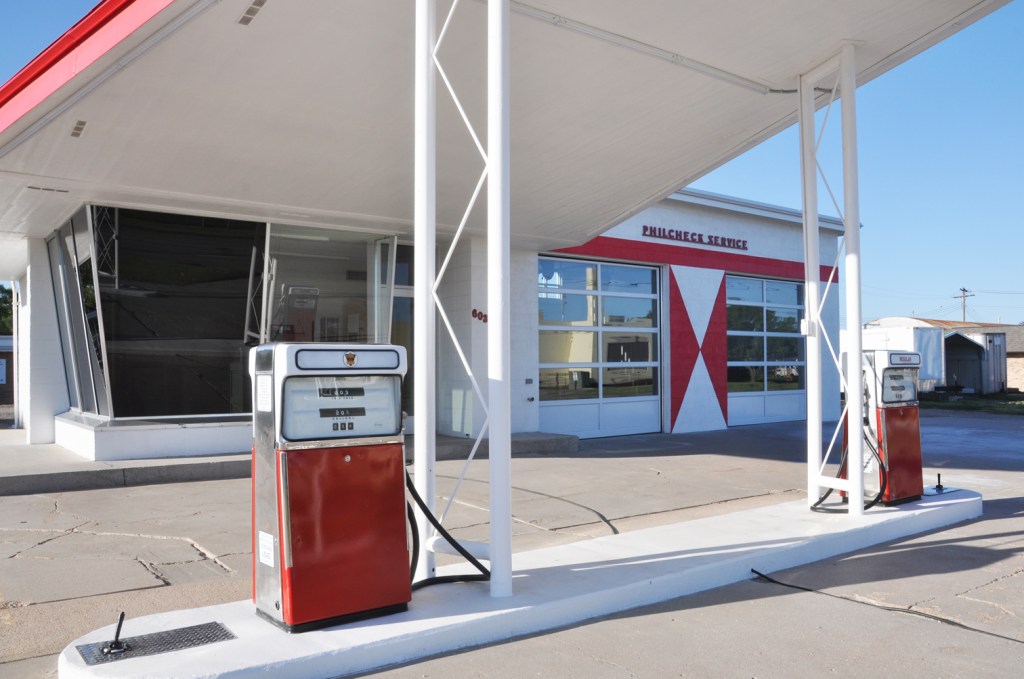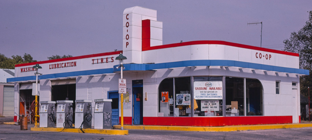 Lastly, this former gas station in Atchison, KS with this iceberg-like facade was built in 1930. Around 2021, it was painted this horrible gray (previously white):