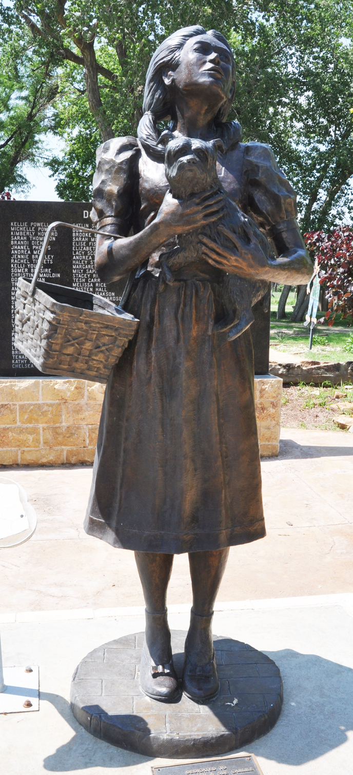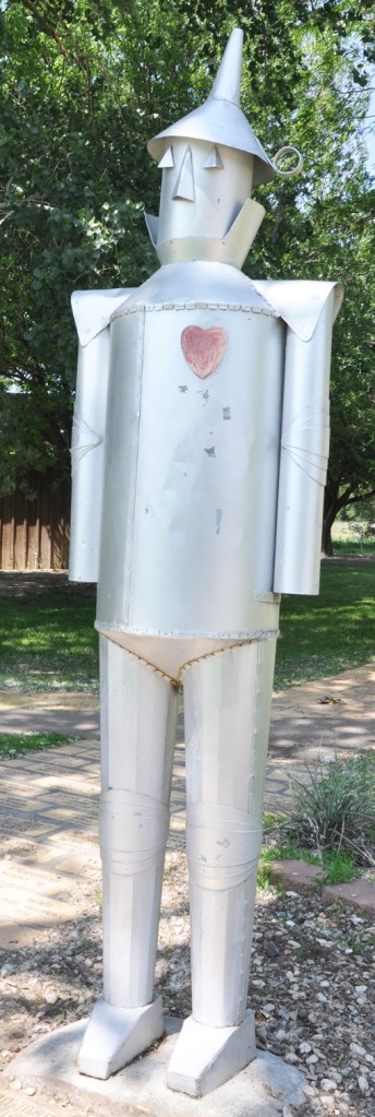 This bear statue in Stilwell, KS waves to cars on Highway 69. It was built in 1979 for a realtor and was painted brown originally. It has been in this backyard since at least 2009 and is often dressed in Kansas City Chiefs or Royals jerseys:
